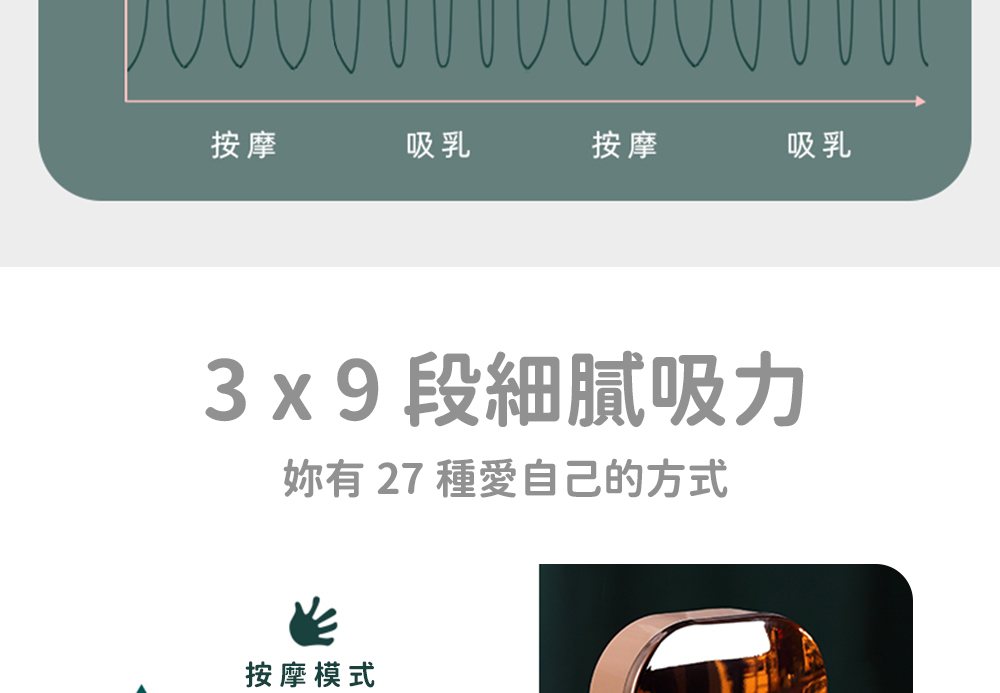 ◆三種模式:按摩、吸乳及混合模式 可自由挑選